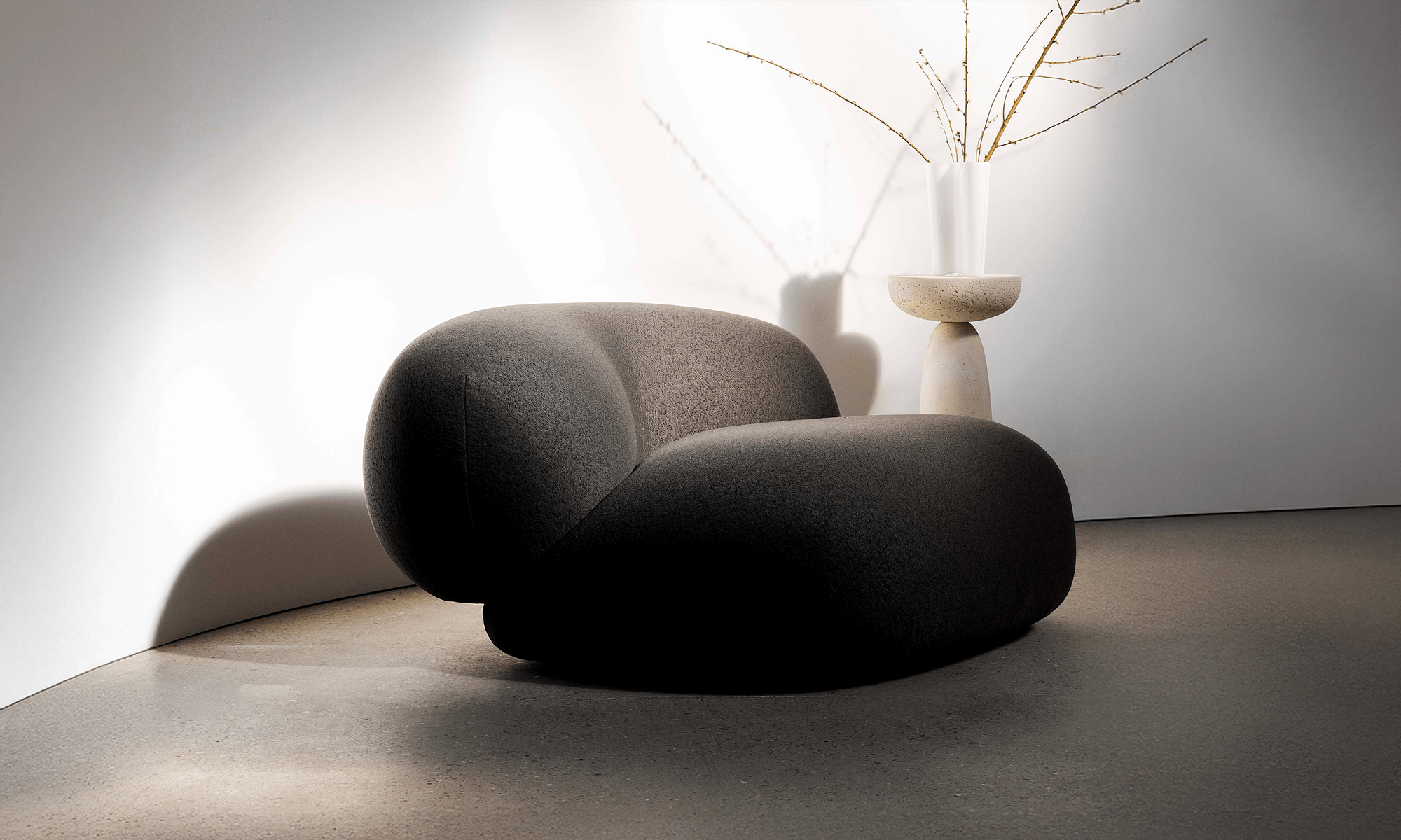 The Roni Armchair combines soft, sculptural curves with plush upholstery for a luxurious and inviting seat. Its modern, low-seat design is available in both fixed and swivel versions, making it a versatile statement piece for any space.